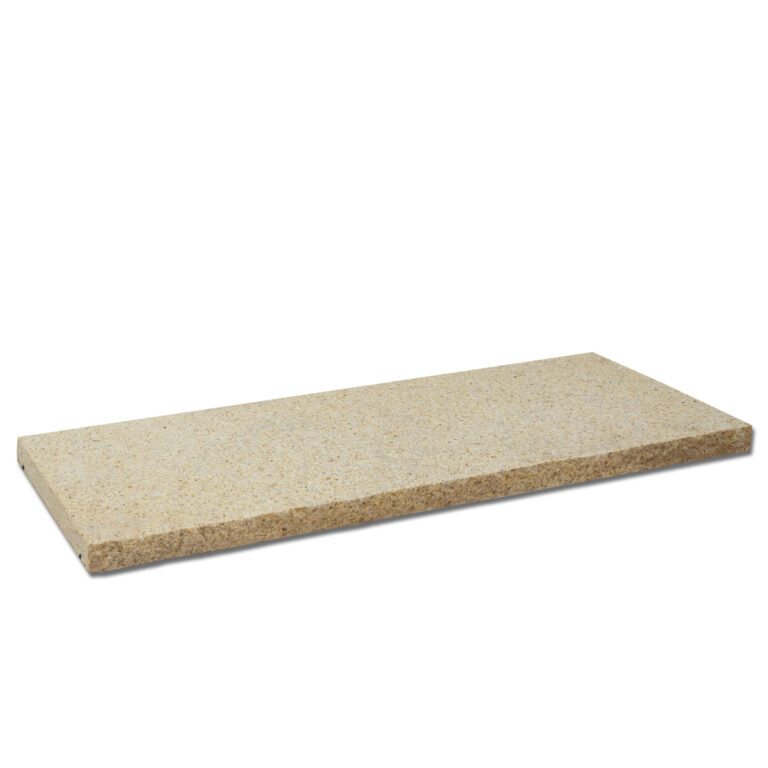 - Bearbeitung: wahlweise gestockt oder geflammt, Längskanten handbekantet, Unterseite mit Wassernase